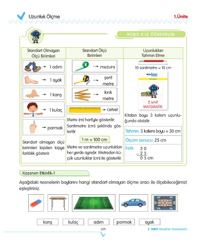 1 m = 100 cm Ölçüm sonucu: 25 cm