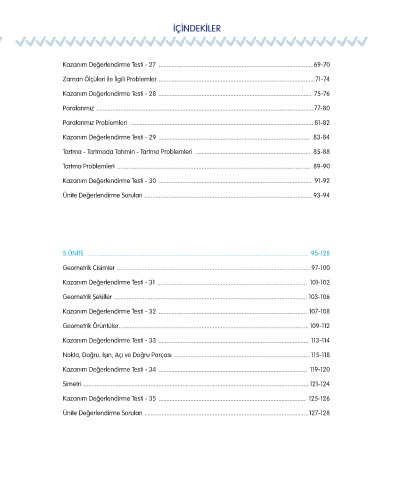 Zaman Ölçüleri ile İlgili Problemler  ..................................................................................................71-74