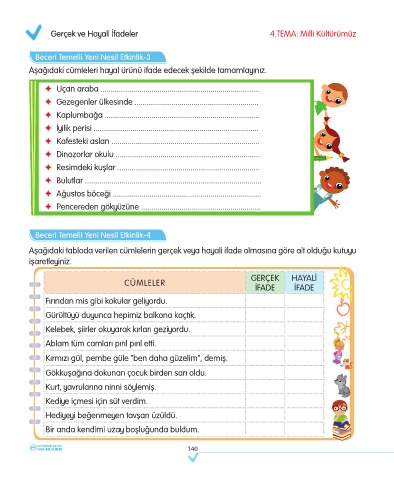 Gerçek ve Hayali İfadeler 4.TEMA: Milli Kültürümüz