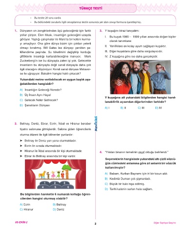 • Bu bölümdeki sorularla ilgili cevaplarınızı testin sonunda yer alan cevap formuna işaretleyiniz.