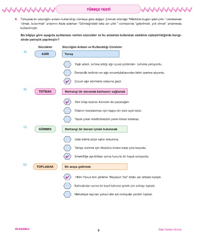 Bu bilgiye göre aşağıda açıklaması verilen sözcükler ve bu anlamda kullanılan cümleler eşleştirildiğinde hangi-