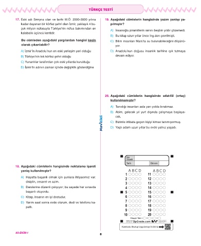 17. Eski adı Smryna olan ve tarihi M.Ö. 2500-3000 yılına 19. Aşağıdaki cümlelerin hangisinde yazım yanlışı ya-